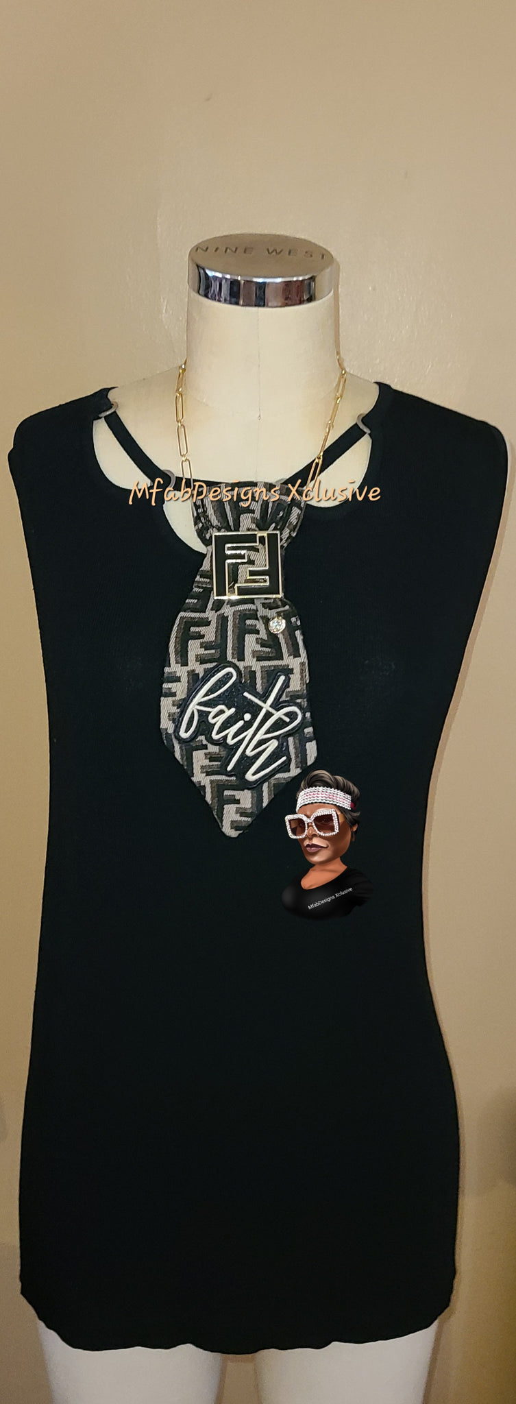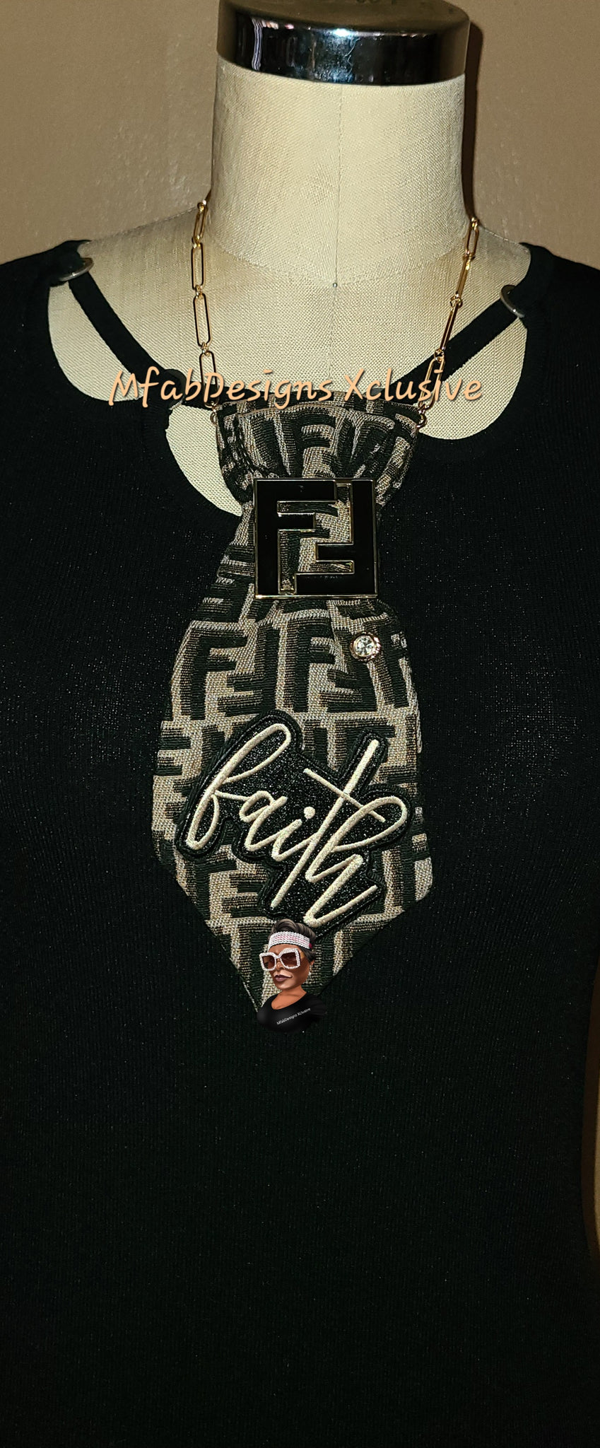 Faith on Fleek Custom.Remix Tie. MfabDesigns Xclusive. As Shown, plus Xtra pins not shown. Custom Handcrafted. Slight Imperfections and Variations are Normal. The Highest Quality of Materials were used. All Sales are Final. No Exchanges or Refunds on Custom Apparel.