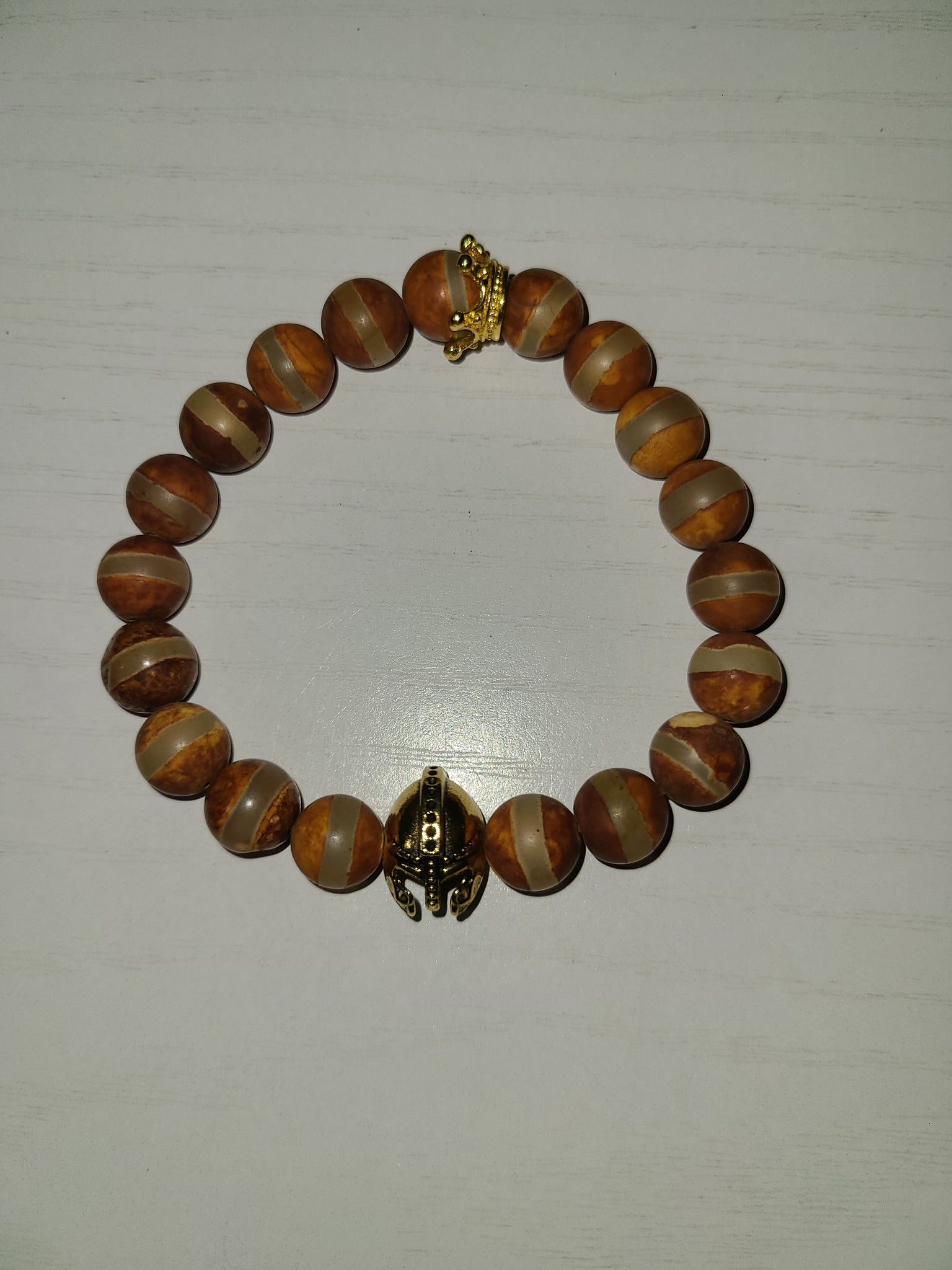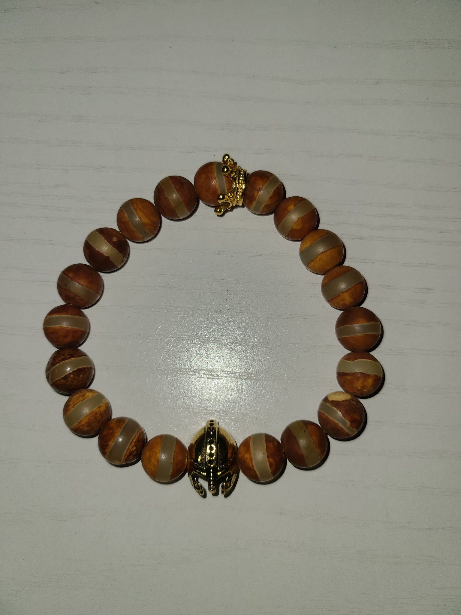 Gentleman Gems Single pcs. Natural Tiberian beads and Antique Gold accent Warrior Head Charm/Connector