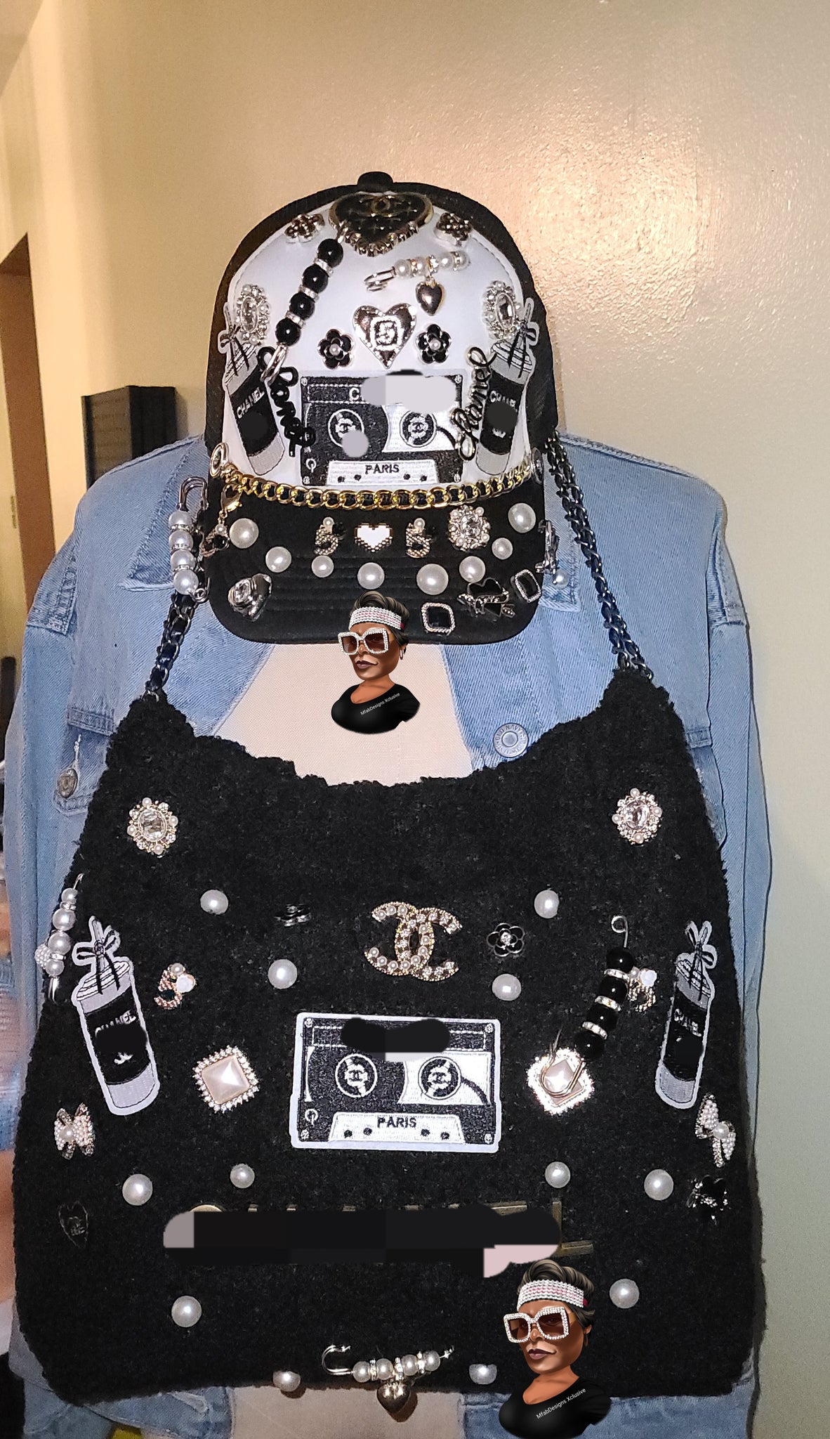 MfabDesigns Xclusive Loaded Custom Cap and Bag as shown. Handcrafted and Custom Designed by MfabDesigns Xclusive.