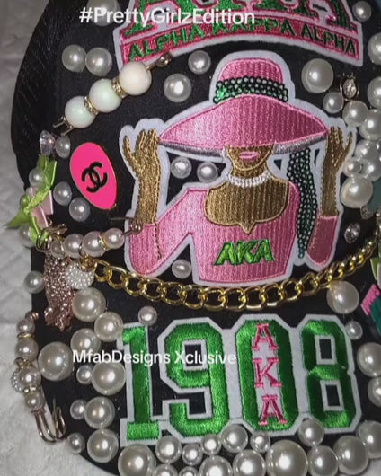 Custom, Loaded (BHDBC) Pink and Green Junk Cap. Handcrafted. As Shown.
