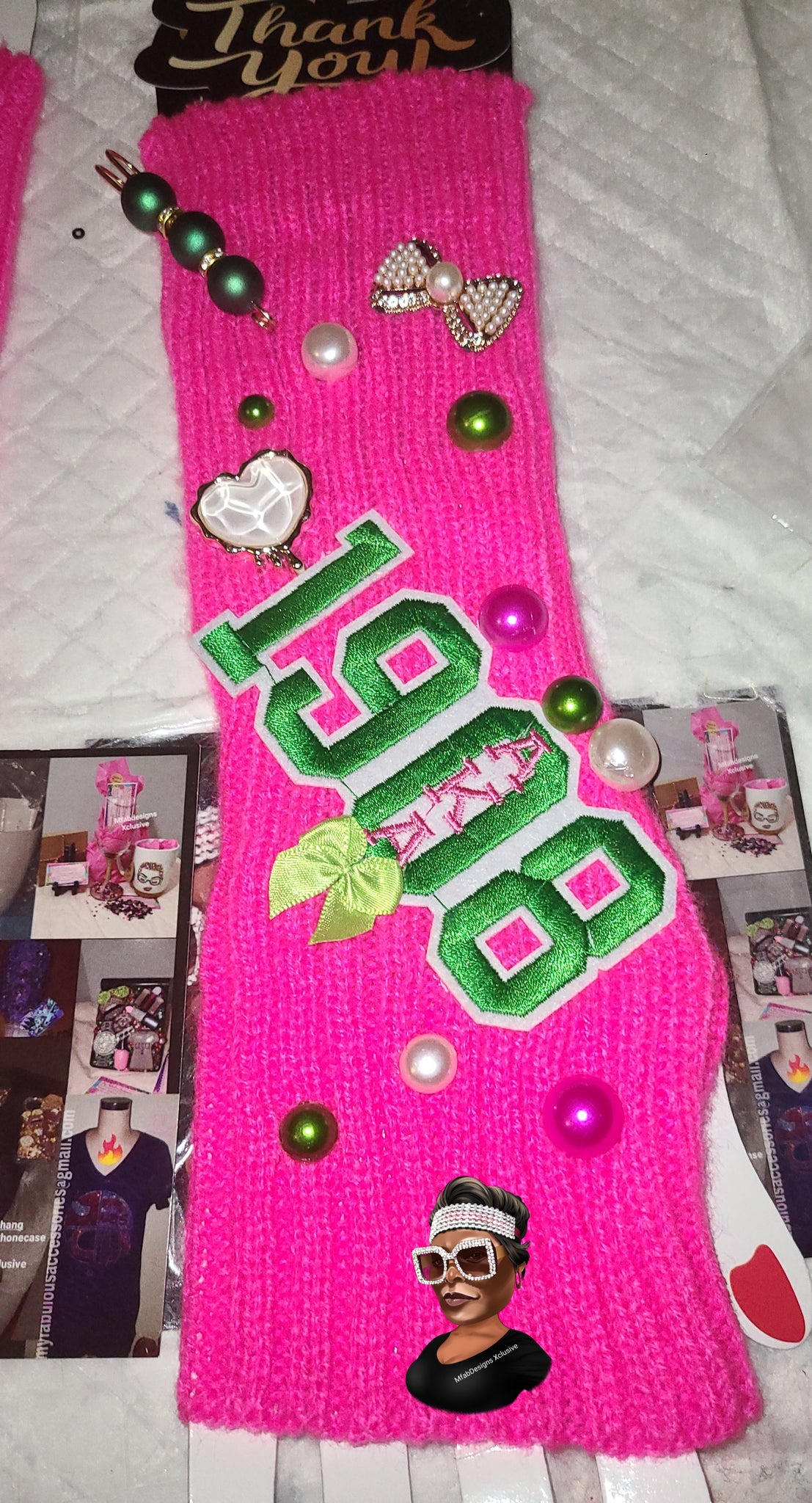 Pink and Green Basic Long Junk Handwarmers. Handcrafted by MfabDesignsXclusive. As Shown. Slight Imperfections and Variations are normal. But Quality and Excellence is Unmatched and Demonstrated.